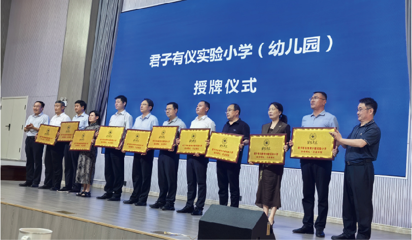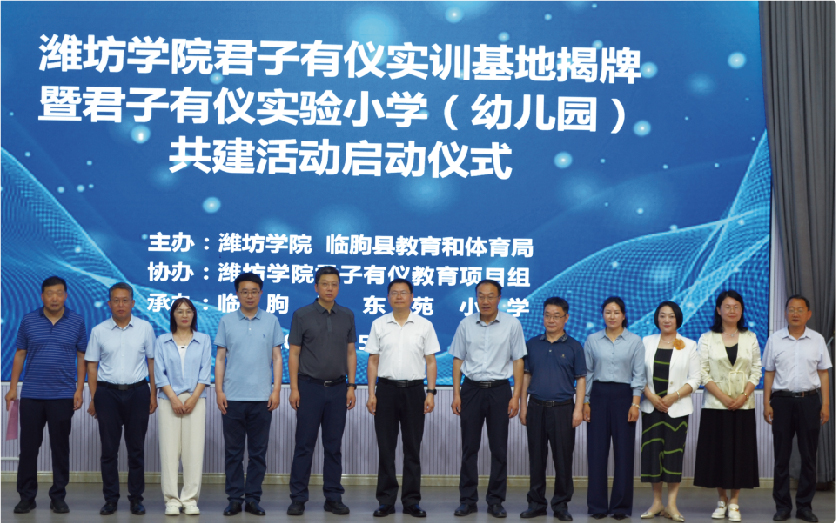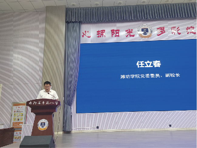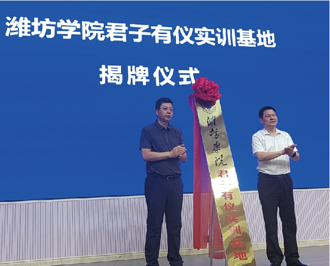 近日,潍坊学院和市县教育局面向全市幼儿园、中小学、职业院校等进行君子有仪实验校的授牌共建,潍坊学院党委委员、副校长任立春,山东省现代品牌学校研究所所长张航,宣传部长、教育工委书记张勇,教育局党组书记、局长张学参加授牌仪式并讲话。
